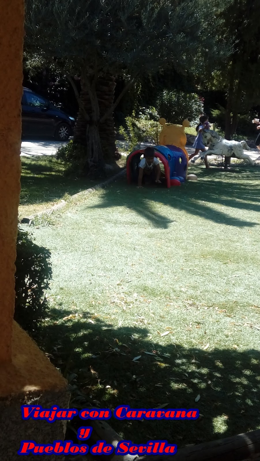 Cuentan con un parque para los peques, que lo tienen muy bien preparado con césped artificial, y esta entre el bar y la recepción.