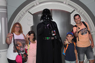 En la atracción Star Wars Hyperspace Mountain lo pase fatal, a mi peque tampoco le gusto nada (es como yo y le dan miedo las atracciones fuertes y de alturas😅), casi desde el principio cerré los ojos y no vi nada y al bajarme salí mareada, vamos que lo pase fatal, fatal🤦♀️, menos mal que el peque se había sentado con el padre y la niña conmigo. La atracción era una como una montaña rusa, te ponen hasta bocabajo y vas como en una nave de Star Wars.
